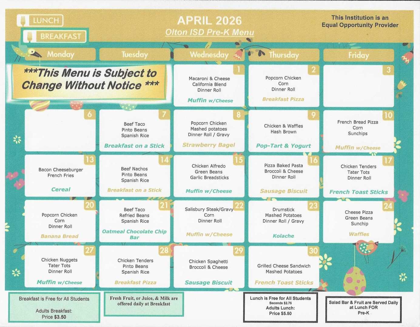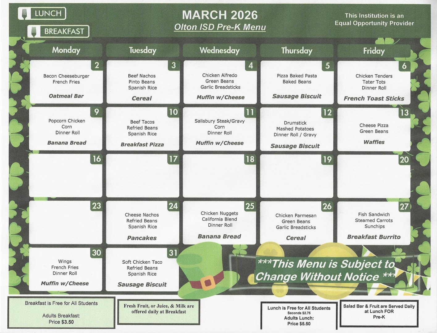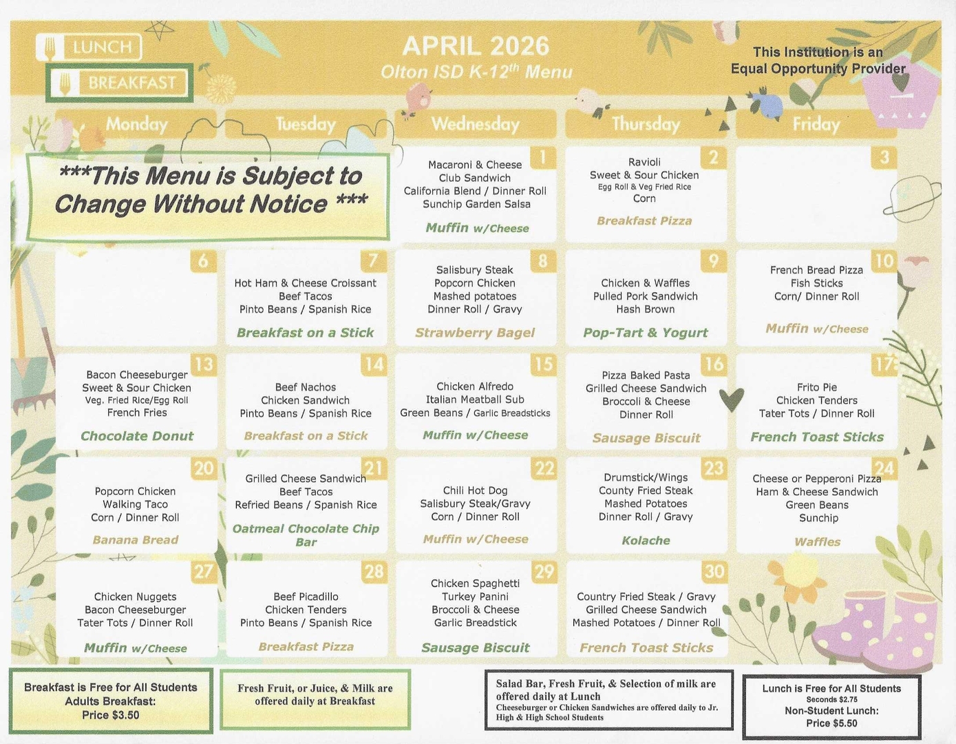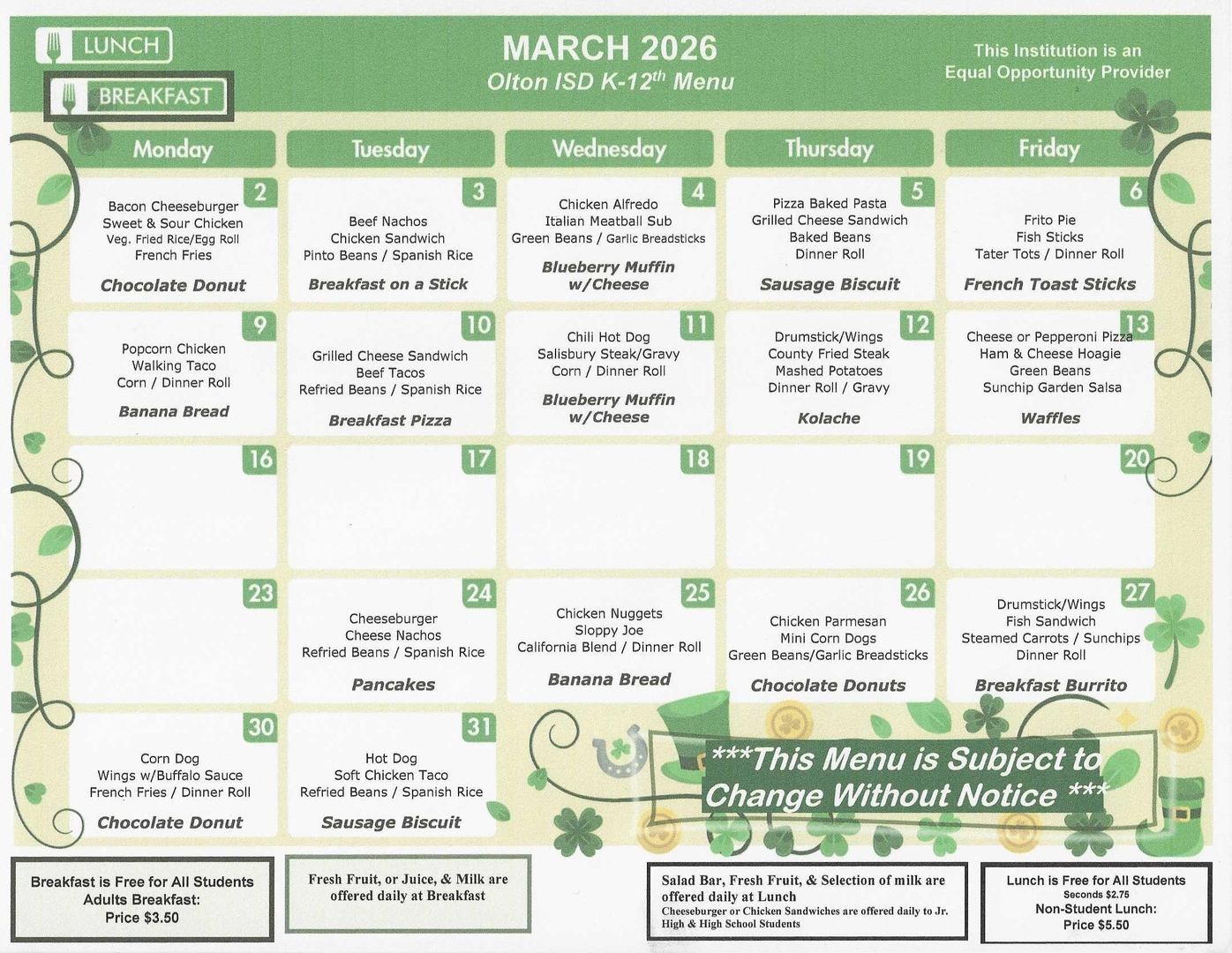 Olton ISD Cafeteria Menus